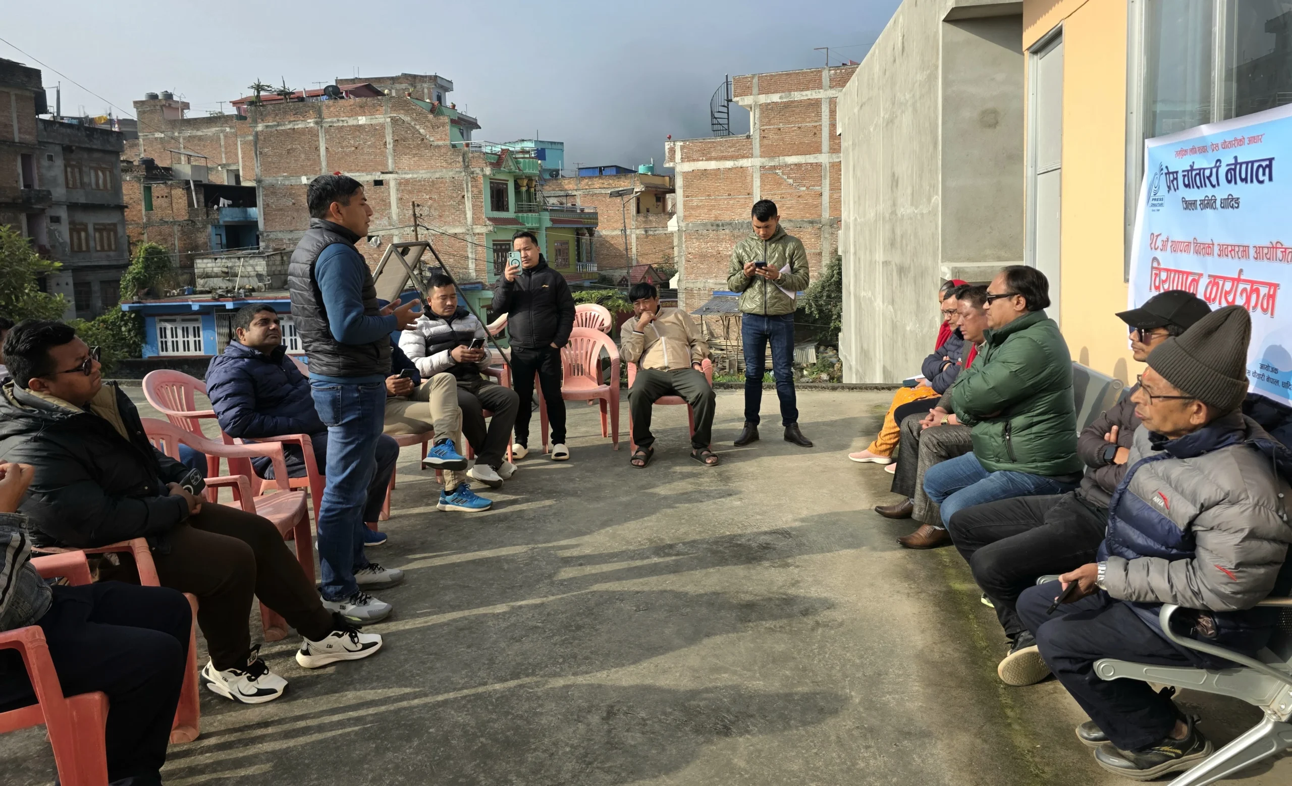 त्यस्तैगरी, प्रेस चौतारी नेपाल धादिङका अध्यक्ष अर्जुन श्रेष्ठले प्रेस चौतारी नेपालले पत्रकारहरूको पेशागत हक–हित, प्रेस स्वतन्त्रताको रक्षा, अभिव्यक्ति स्वतन्त्रता, पत्रकार सुरक्षा र जिम्मेवार तथा व्यावसायिक पत्रकारिताको पक्षमा निरन्तर आवाज उठाउँदै आएको बताए ।